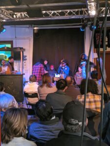 Les productions sont ensuite déclamées, chantées ou montrées devant un public.